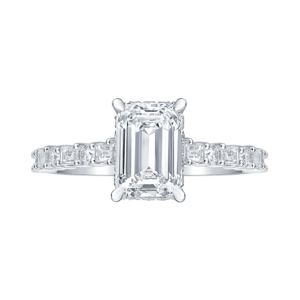 Lab Grown Diamond 2.80ct Emerald Solitaire with diamond shank ring