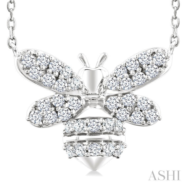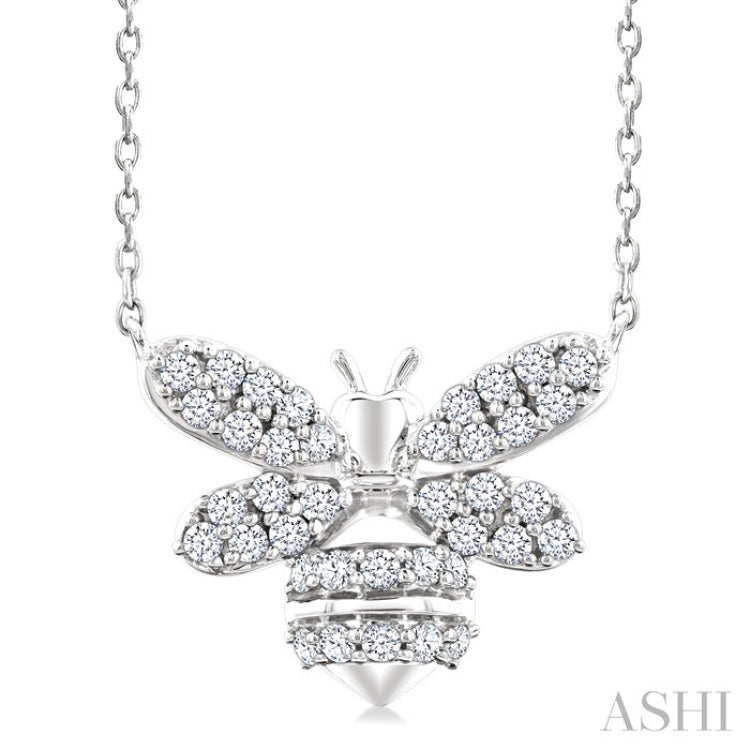 1/4 Ctw Petite Bumble Bee Round Cut Diamond Fashion Pendant With Chain in 10K White Gold