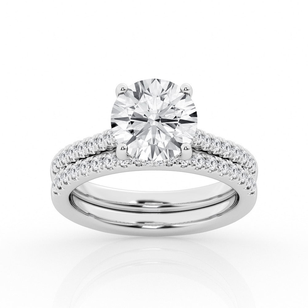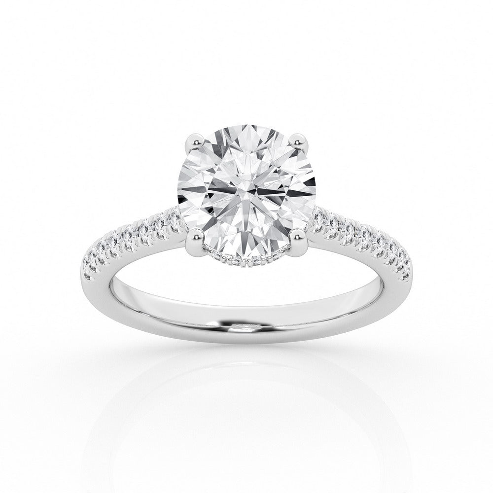 14K White Gold 3.50 cttw Hidden Halo Bridal Ring with 3.00 center Round